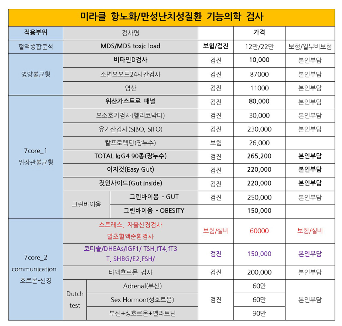 중금속 오염등으로 나타날 수 있는 만성질환 등을 새로운 접근으로 치료하기 위한 검사입니다.