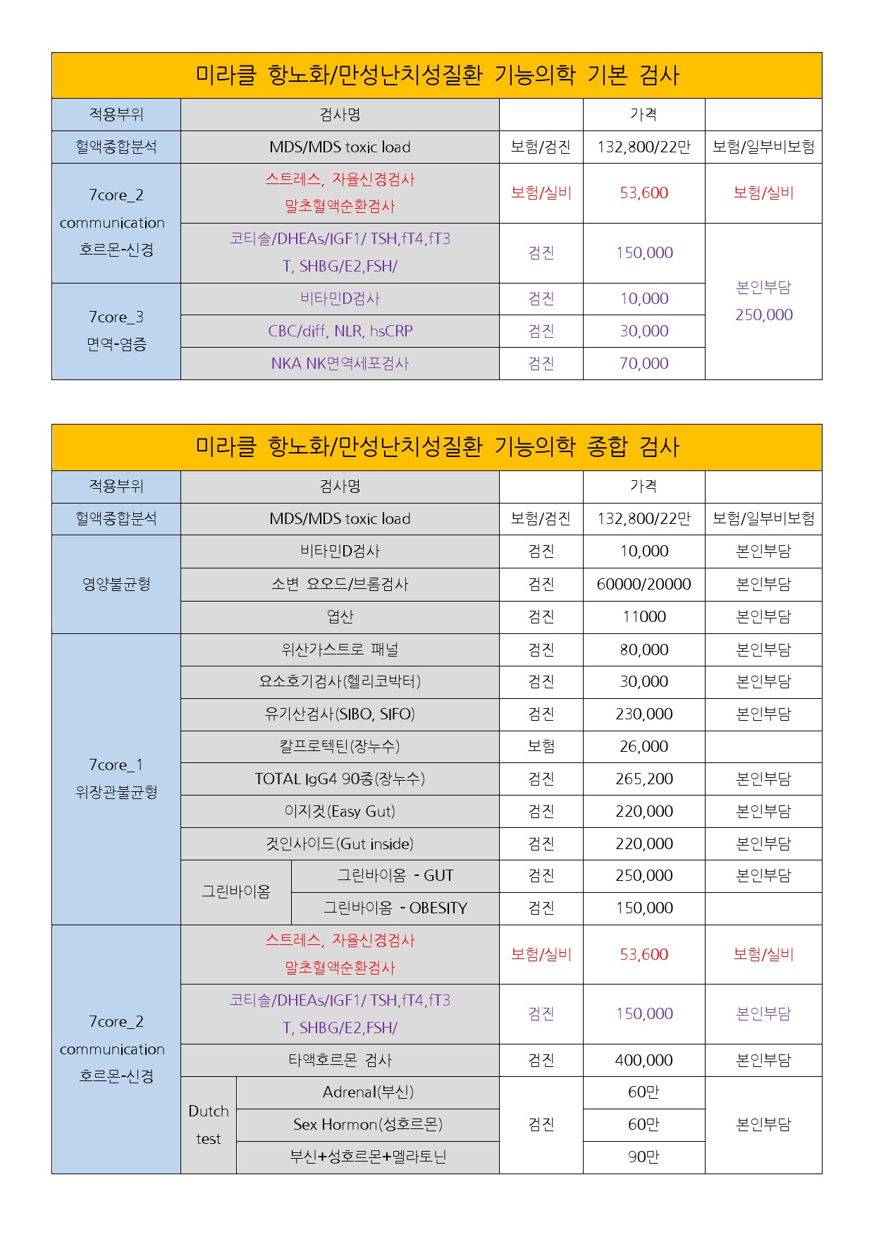 1) 기본 기능의학 검사를 하시면