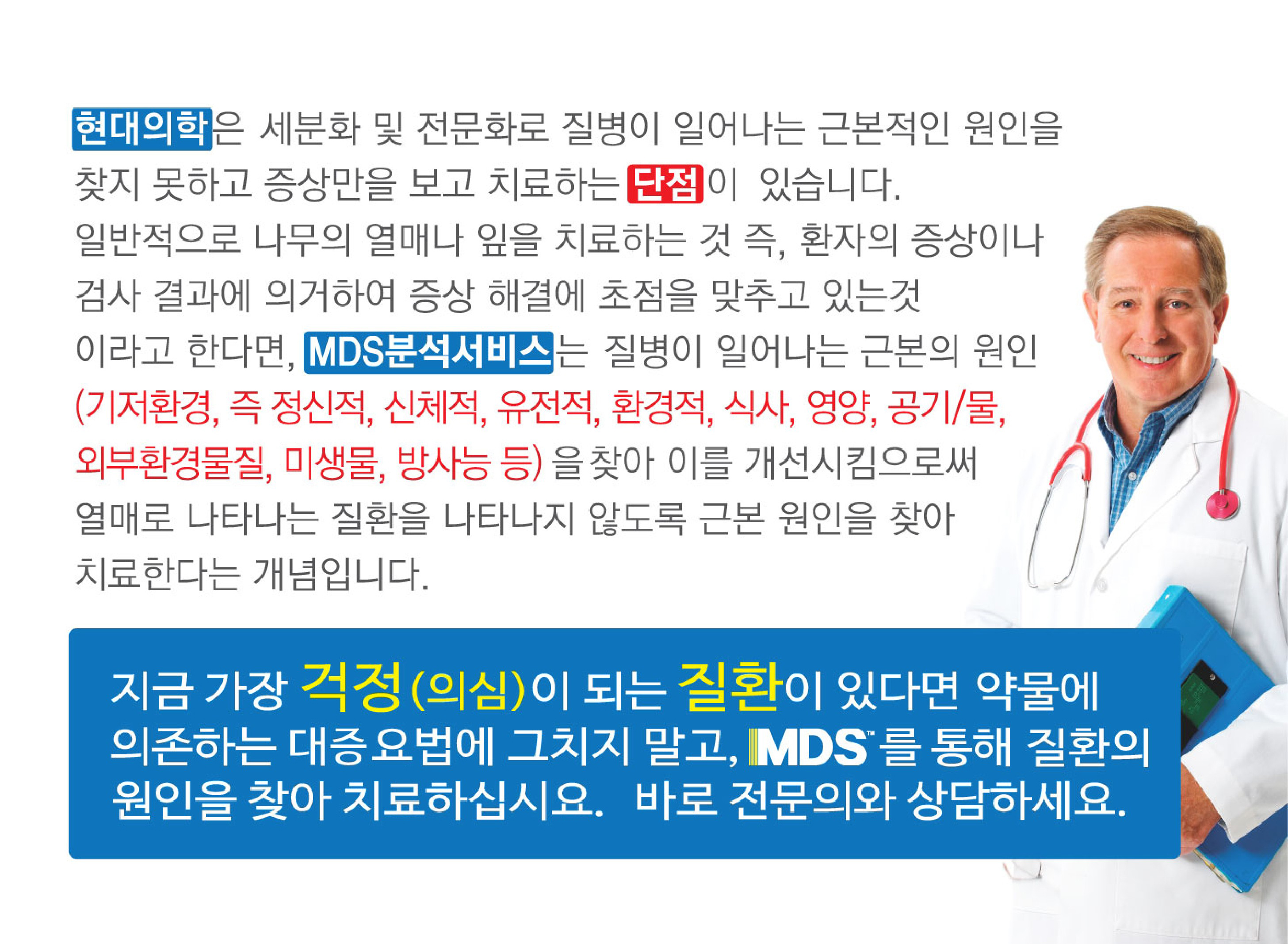영양불균형과 환경오염, 면역능력을 진단하여 근본 원인 치료를 병행하는 통합의학적인 진료를 가능하게합니다.